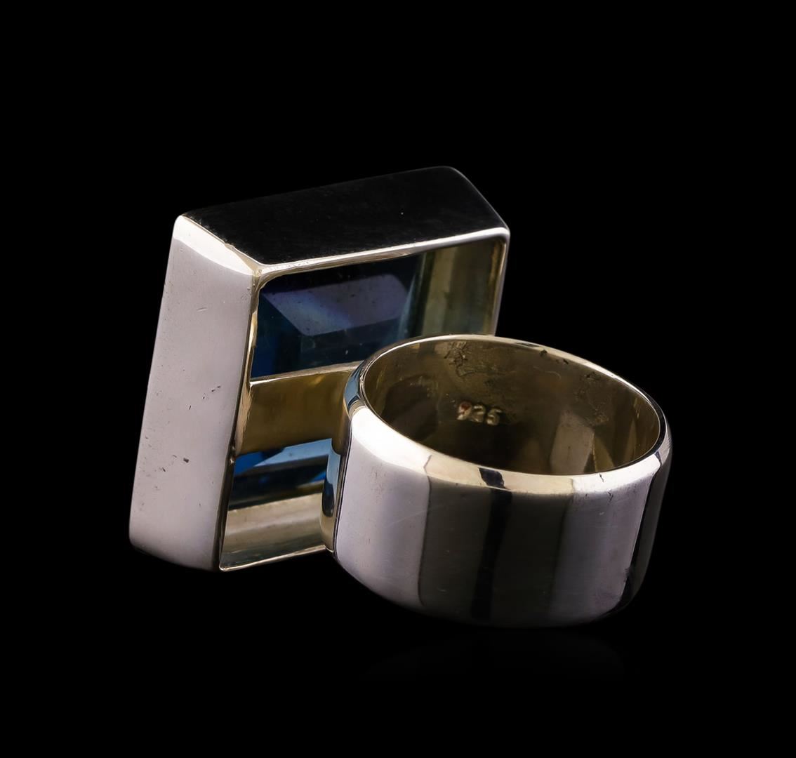 One of a kind high fashion sterling silver Ring weighing 18.4 grams. Containing: Blue Crystal. This sterling silver promises a lasting shine.