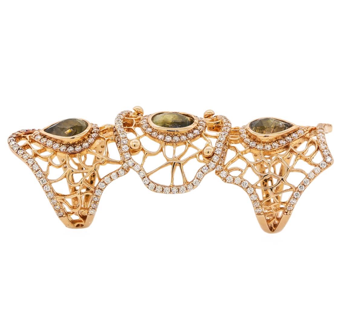 One of a kind high fashion sterling silver Ring weighing 12.8 grams. Containing: Labradorite, Cubic Zirconia. This sterling silver promises a lasting shine.