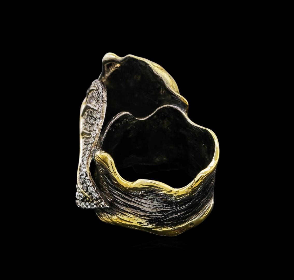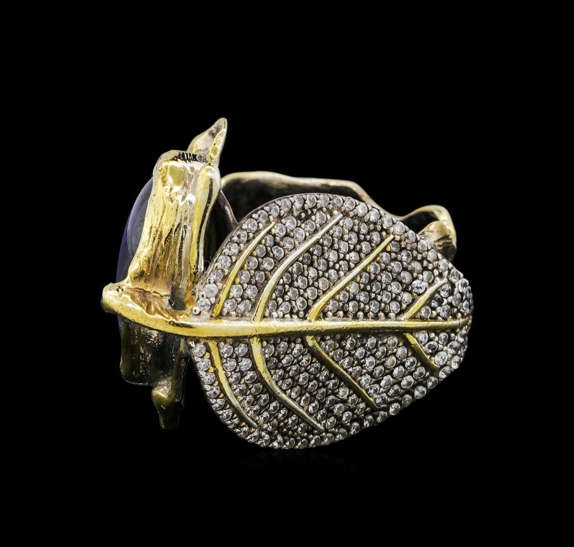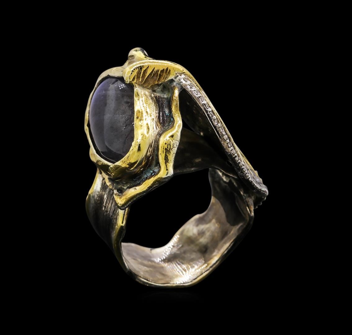 One of a kind high fashion sterling silver Ring weighing 17.1 grams. Black Antique texture. Containing: Labradorite, White Crystal. This sterling silver promises a lasting shine.