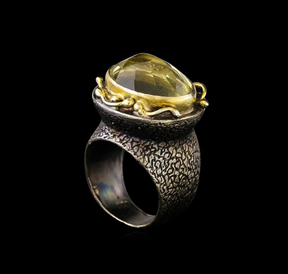 One of a kind high fashion sterling silver Ring weighing 21.4 grams. Black Antique texture. Containing: Lemon Quartz, Red Crystal. This sterling silver promises a lasting shine.