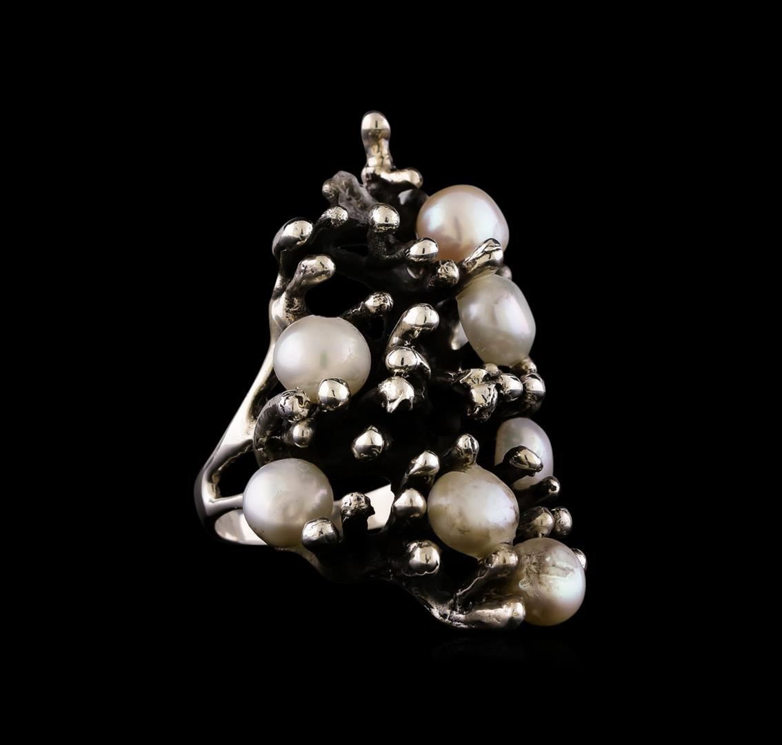 One of a kind high fashion sterling silver Ring weighing 20.9 grams. Containing: Natural Button Pearl. This sterling silver promises a lasting shine.