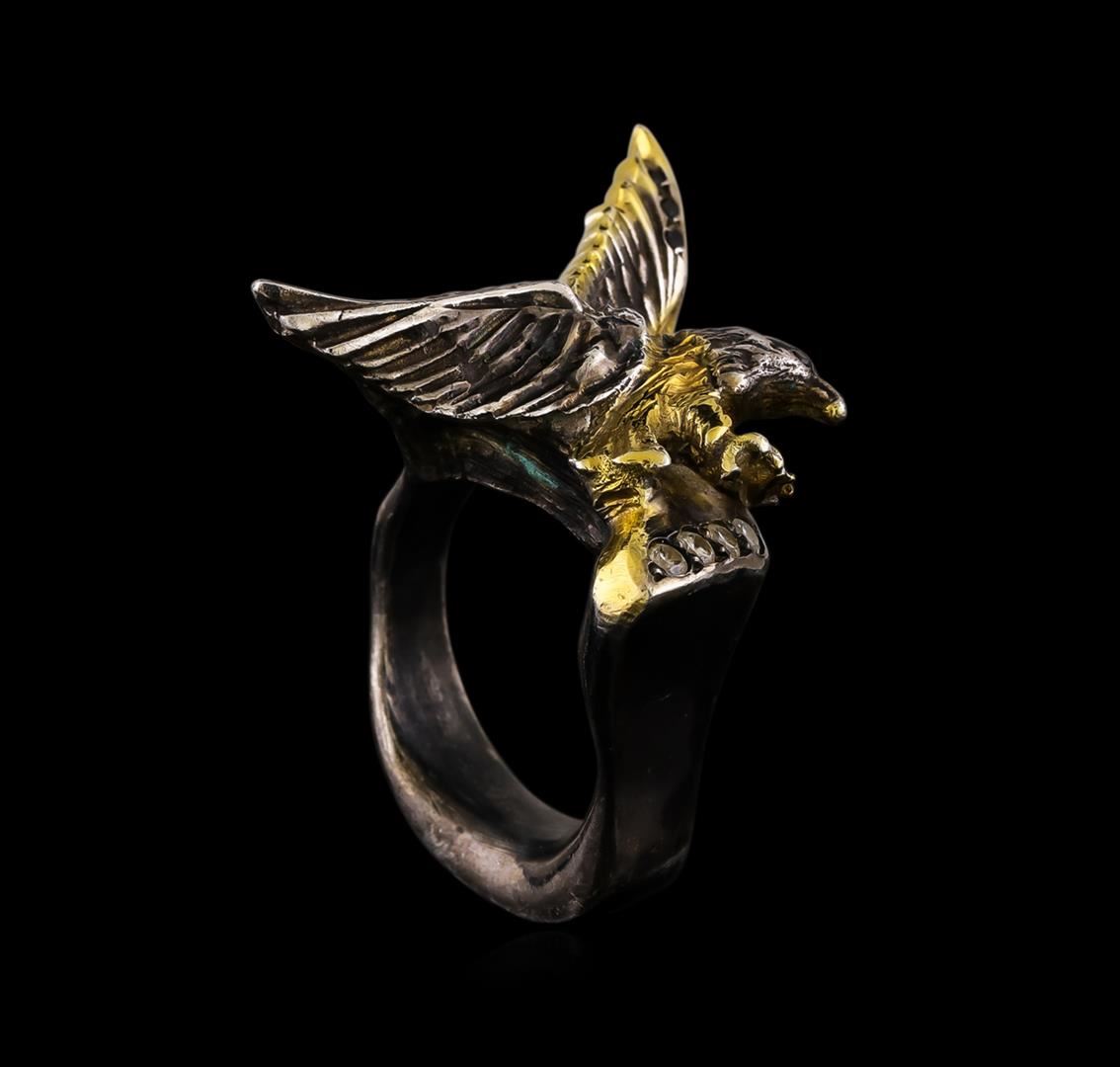 One of a kind high fashion sterling silver Ring weighing 25.2 grams. Containing: White Crystal, Black Crystal. This sterling silver promises a lasting shine.