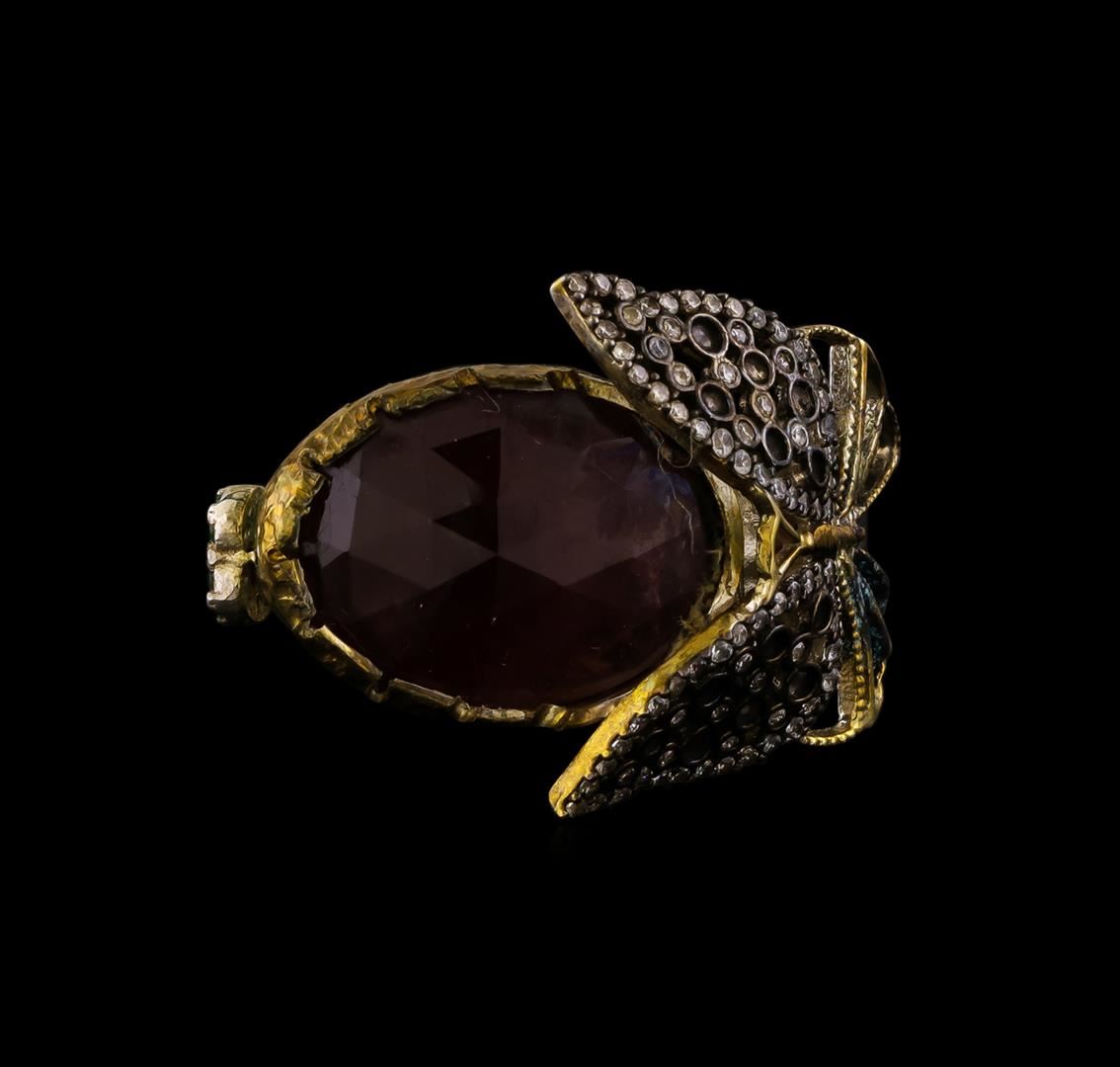 One of a kind high fashion sterling silver Ring weighing 15.6 grams. Containing: Corundum, White Crystal, Green Crystal. This sterling silver promises a lasting shine.