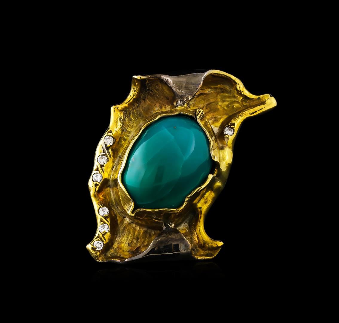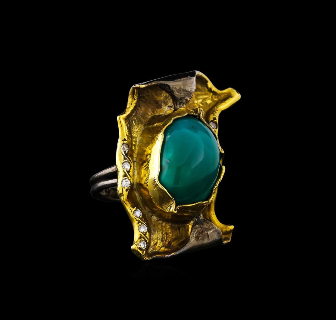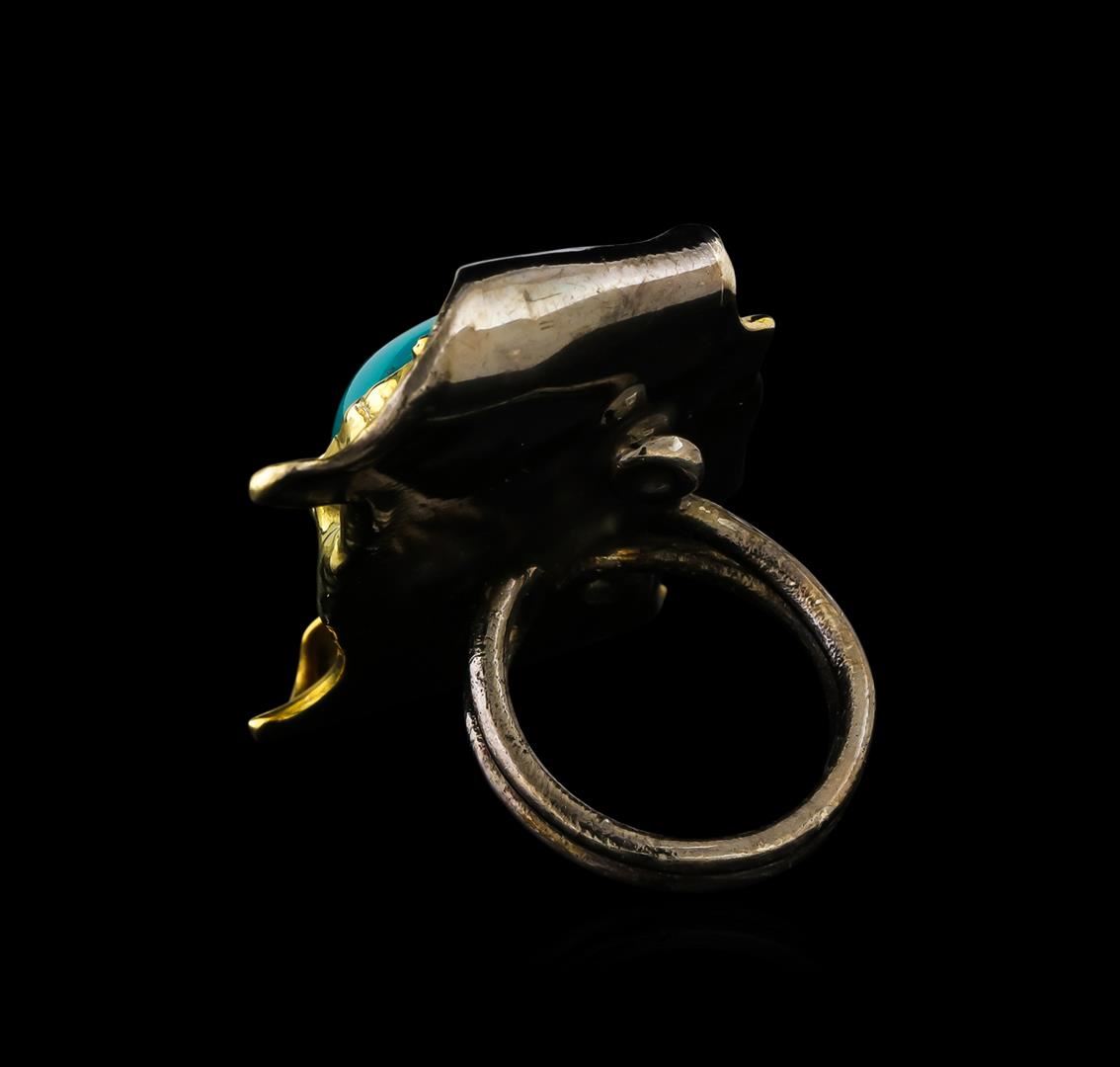 One of a kind high fashion sterling silver Ring weighing 15.9 grams. Black Antique texture. Containing: Created Turquoise, White Crystal. This sterling silver promises a lasting shine.