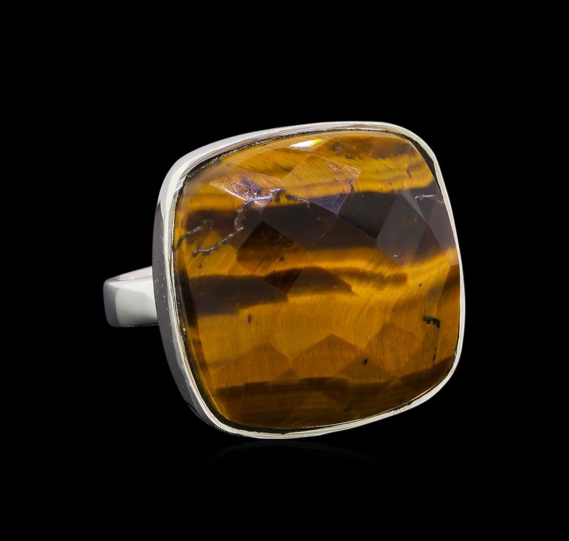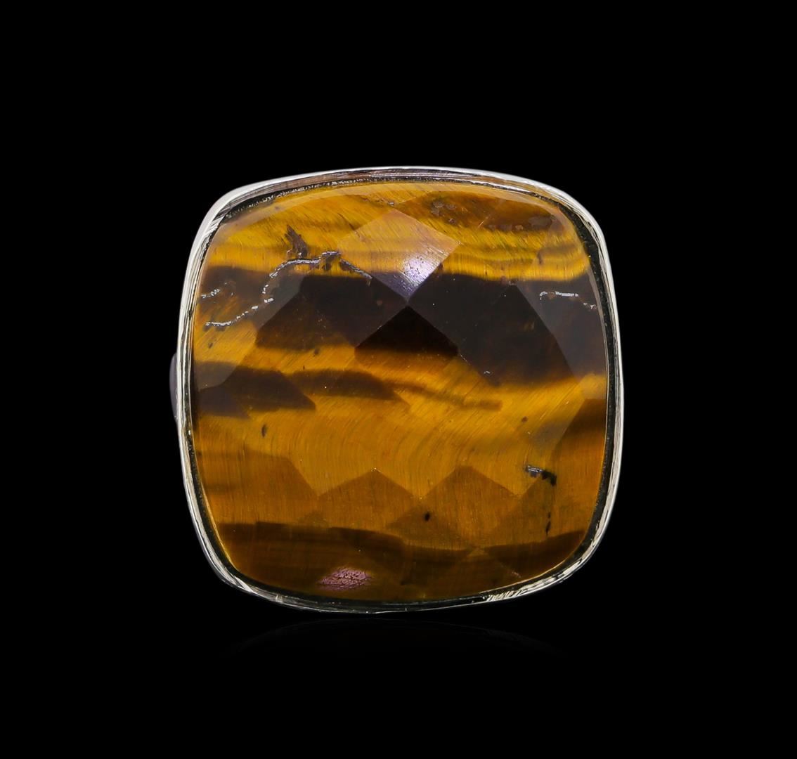 One of a kind high fashion sterling silver Ring weighing 11.3 grams. Containing: Tiger's Eye. This sterling silver promises a lasting shine.