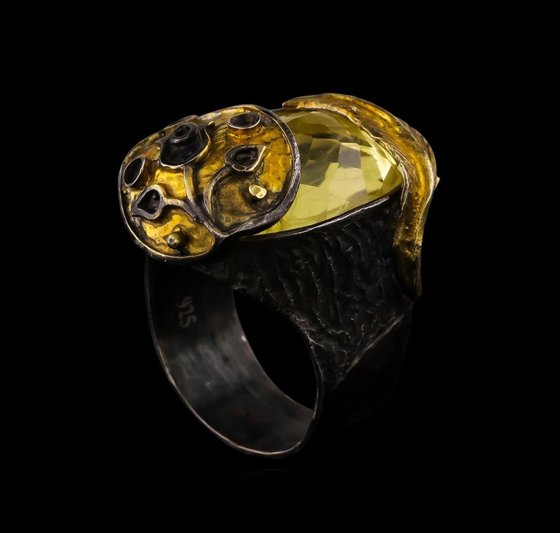 One of a kind high fashion sterling silver Ring weighing 15.7 grams. Containing: Lemon Quartz. This sterling silver promises a lasting shine.