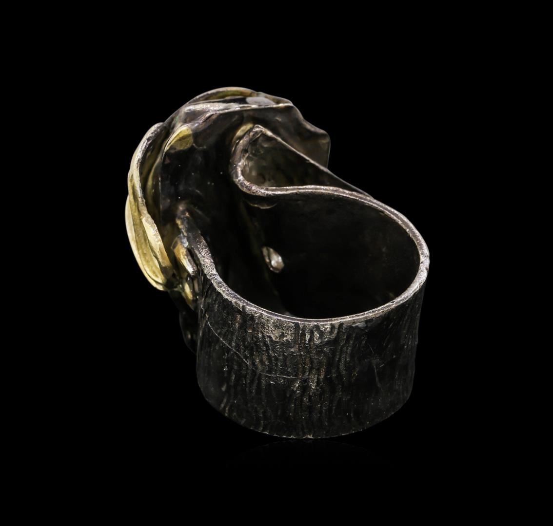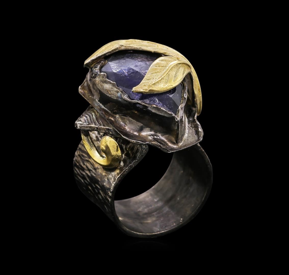One of a kind high fashion sterling silver Ring weighing 24.1 grams. Black Antique texture. Containing: Sapphire. This sterling silver promises a lasting shine.