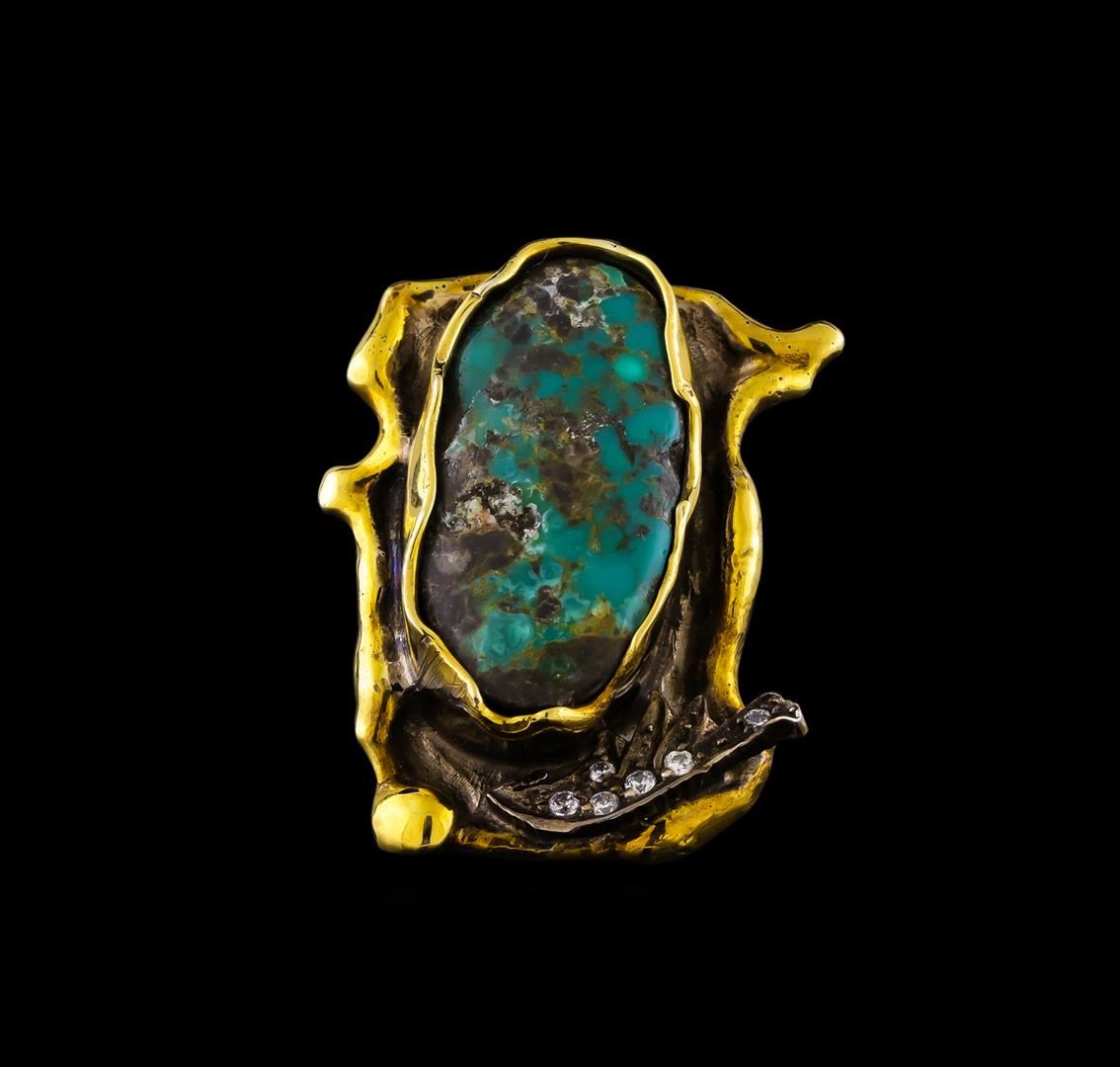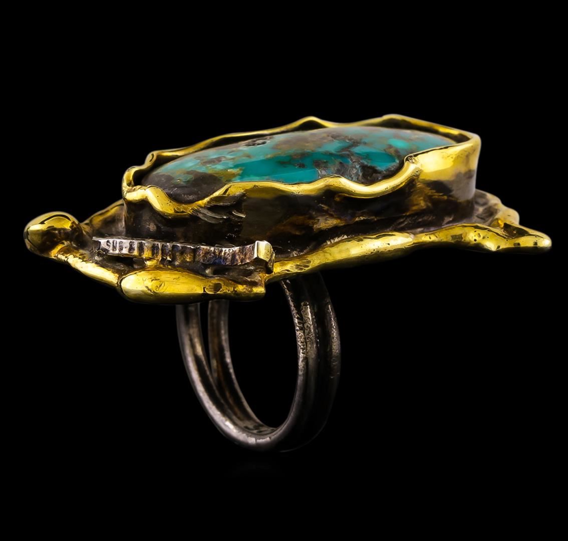 One of a kind high fashion sterling silver Ring weighing 19.2 grams. Containing: Turquoise, White Crystal. This sterling silver promises a lasting shine.