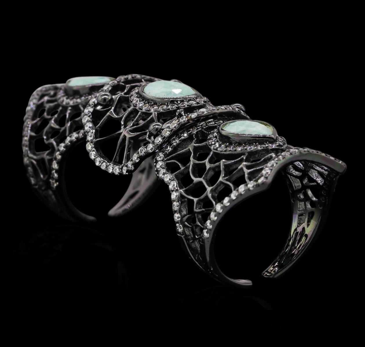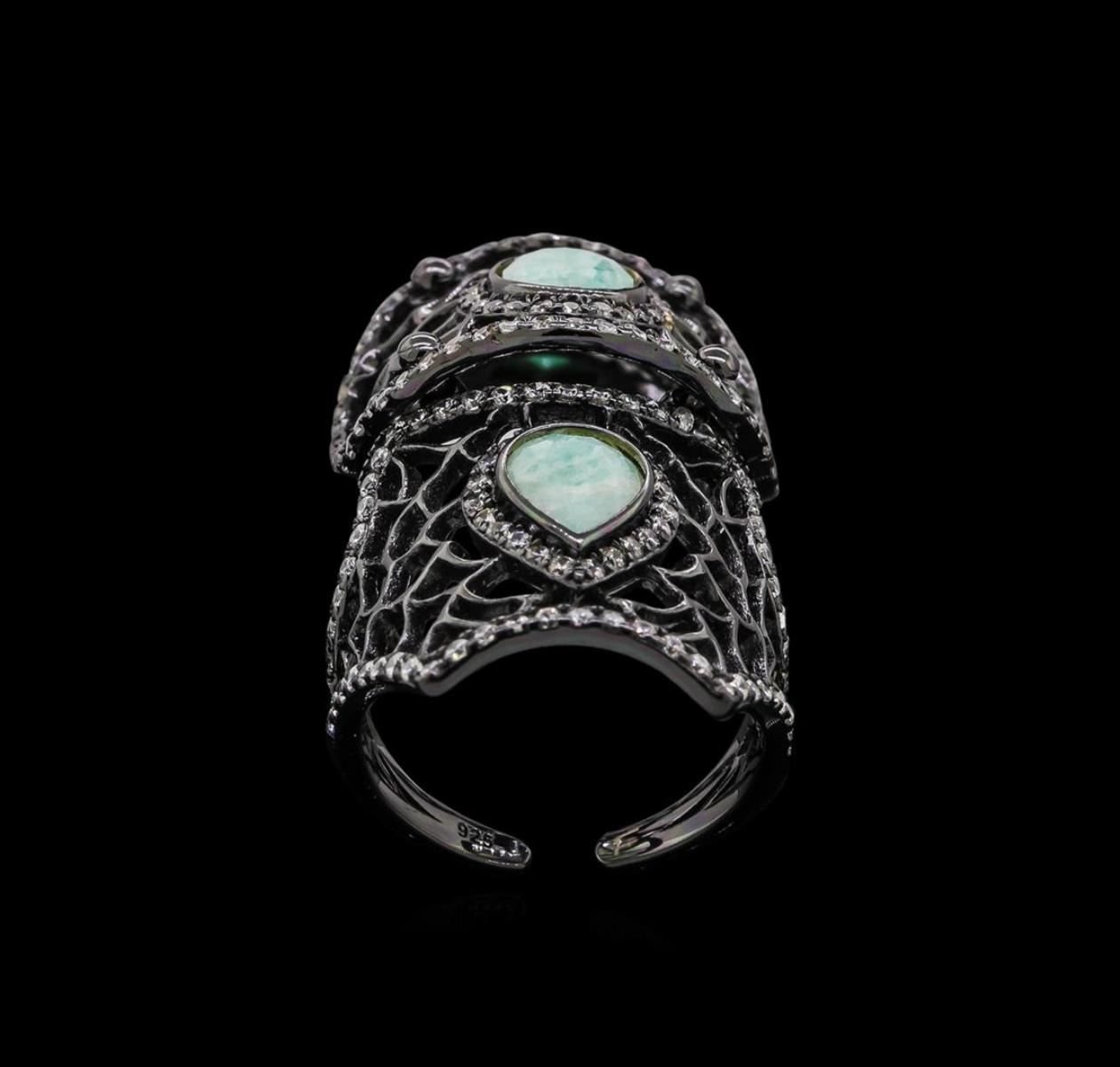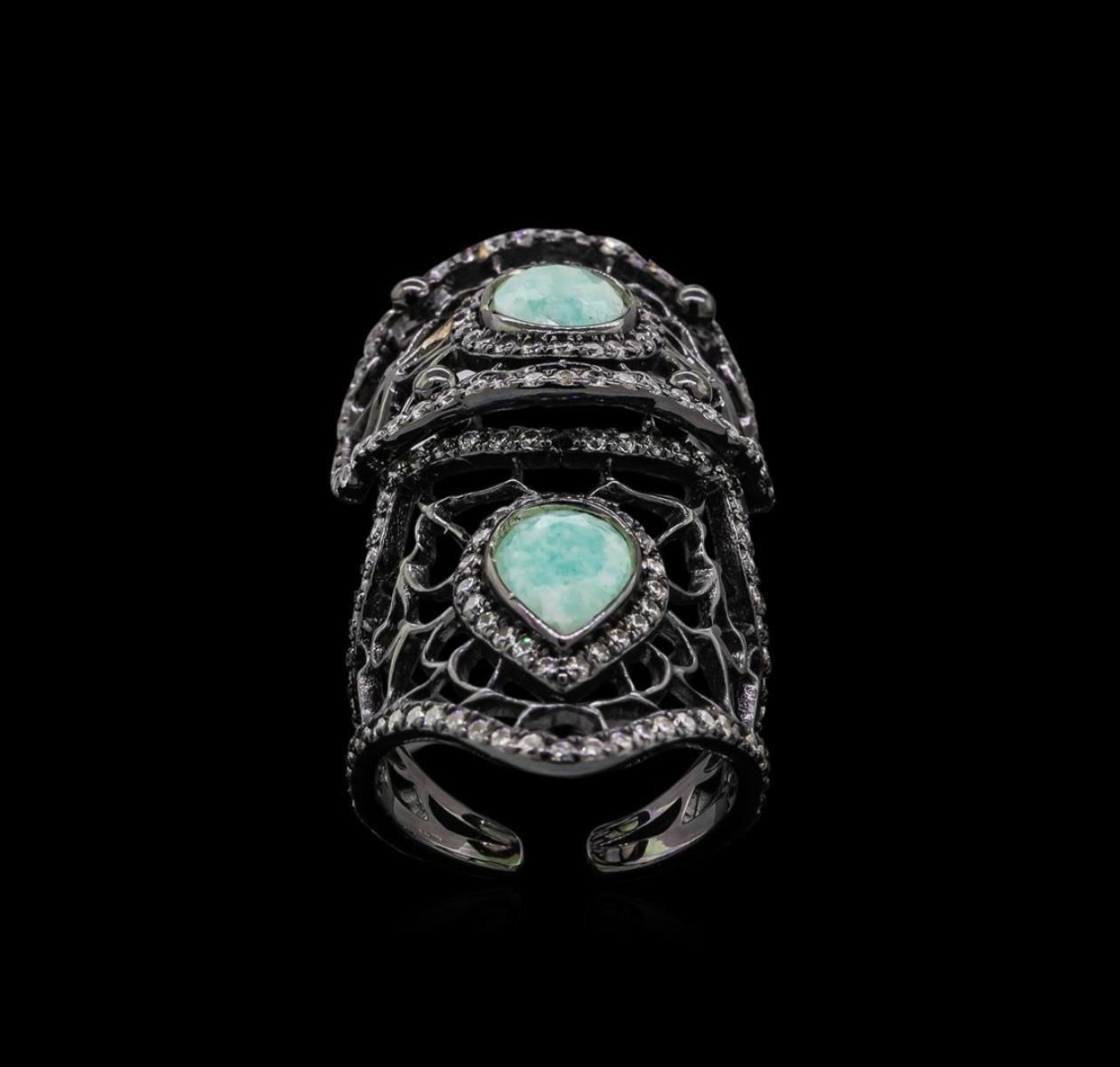 One of a kind high fashion sterling silver Ring weighing 12.1 grams. Containing: Amazonite, Cubic Zirconia. This sterling silver promises a lasting shine.