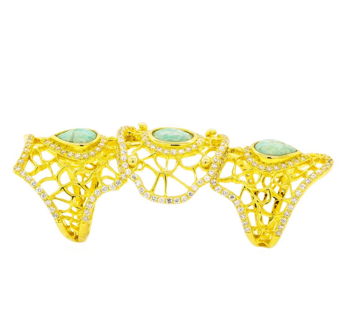 One of a kind high fashion sterling silver Ring weighing 13 grams. Containing: Amazonite, Cubic Zirconia. This sterling silver promises a lasting shine.