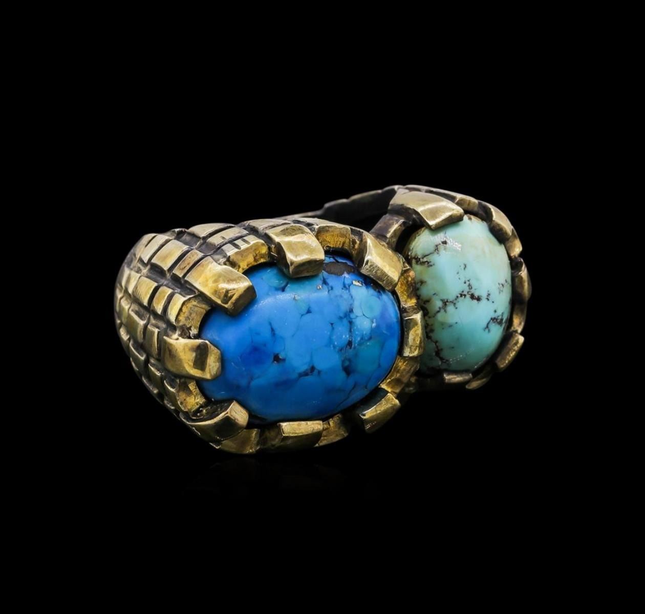 One of a kind high fashion sterling silver Ring weighing 19.6 grams. Black Antique texture. Containing: Treated Turquoise. This sterling silver promises a lasting shine.
