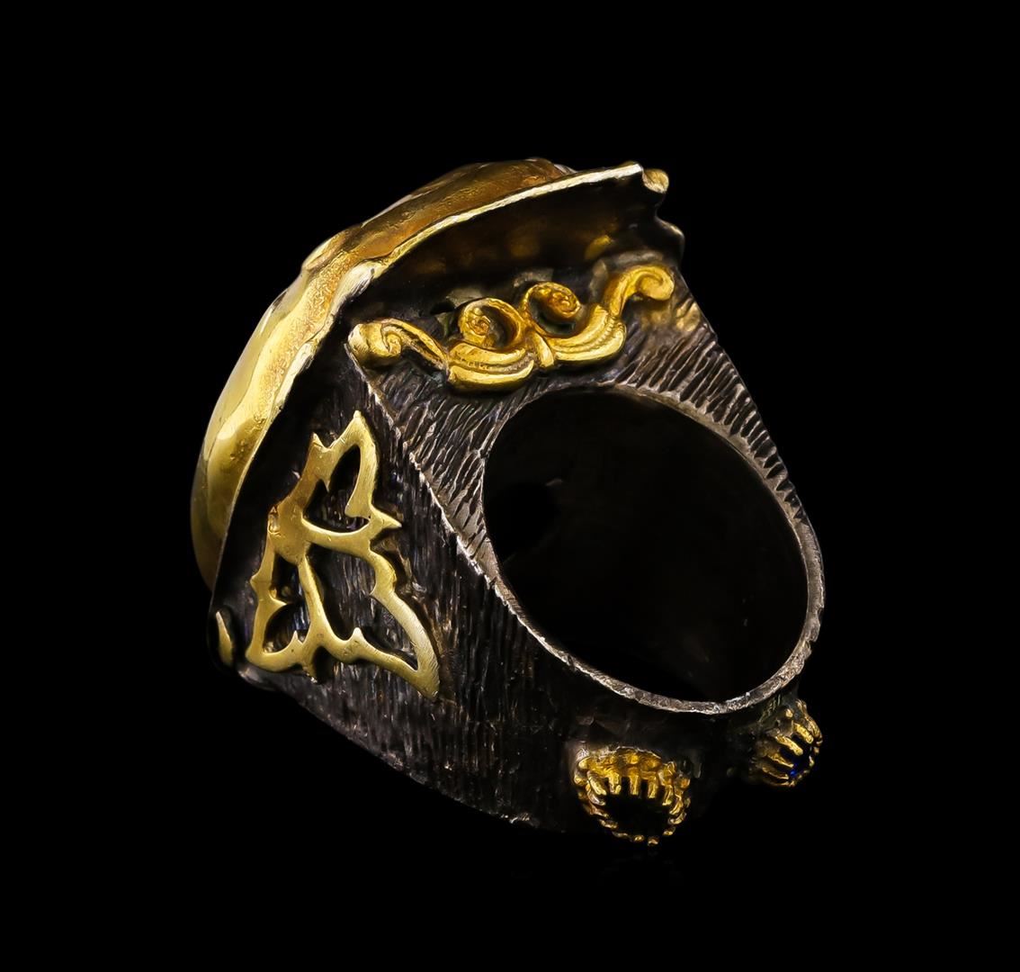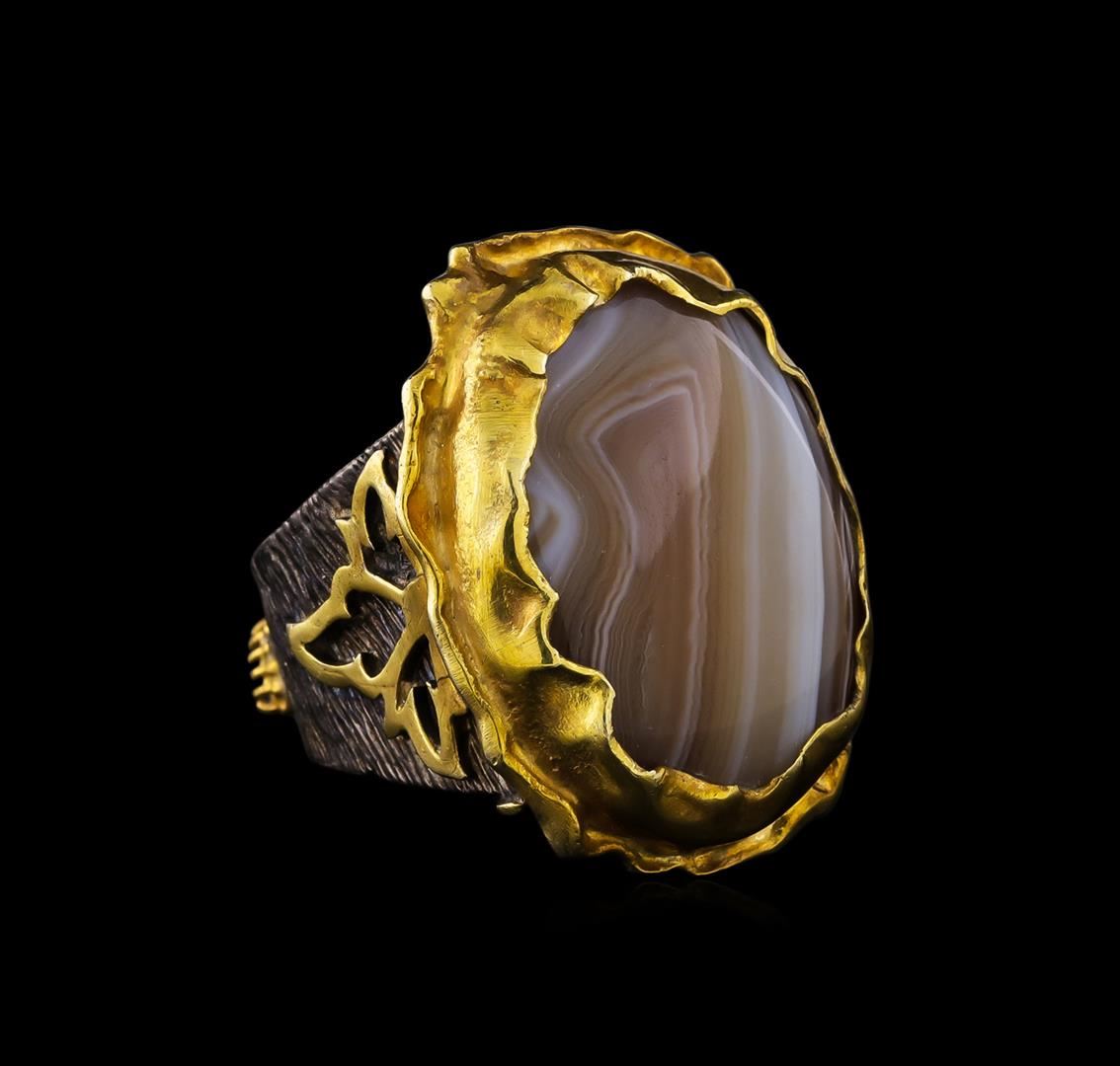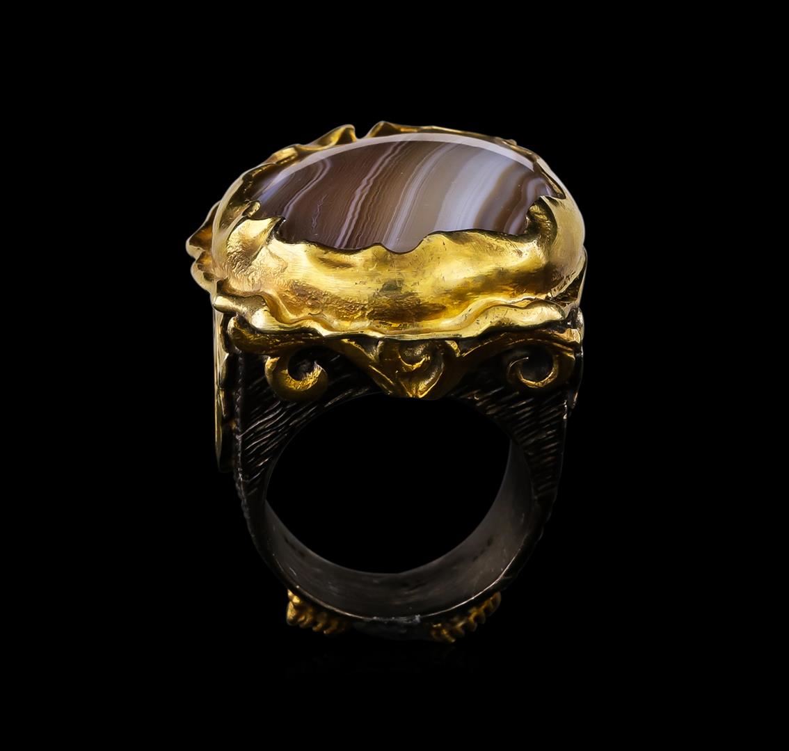 One of a kind high fashion sterling silver Ring weighing 33.3 grams. Black Antique texture. Containing: Agate, Blue Crystal, Yellowish Green Crystal. This sterling silver promises a lasting shine.