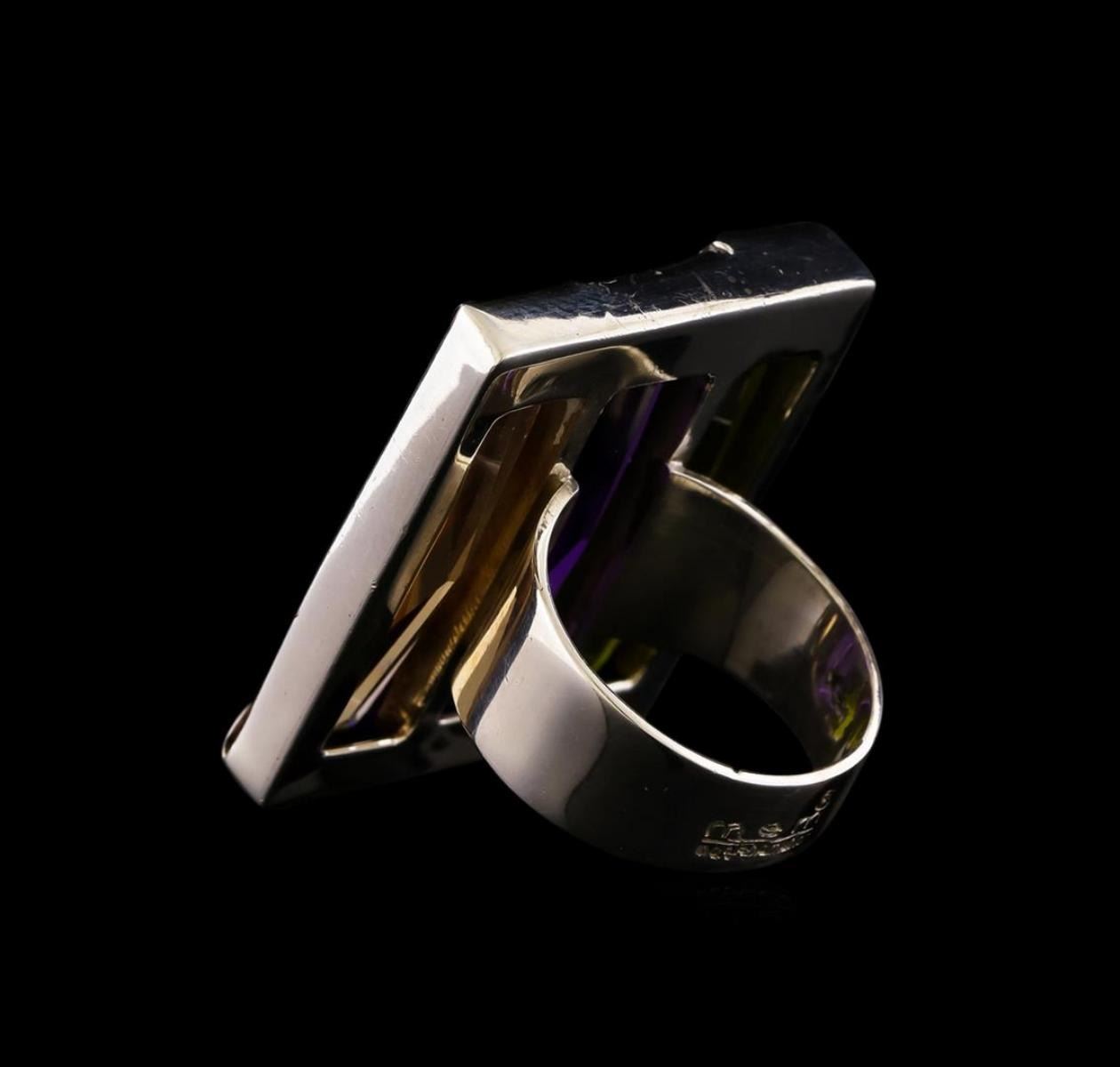 One of a kind high fashion sterling silver Ring weighing 21.3 grams. Containing: Peach Crystal, Purple Crystal, Dark Green Crystal. This sterling silver promises a lasting shine.