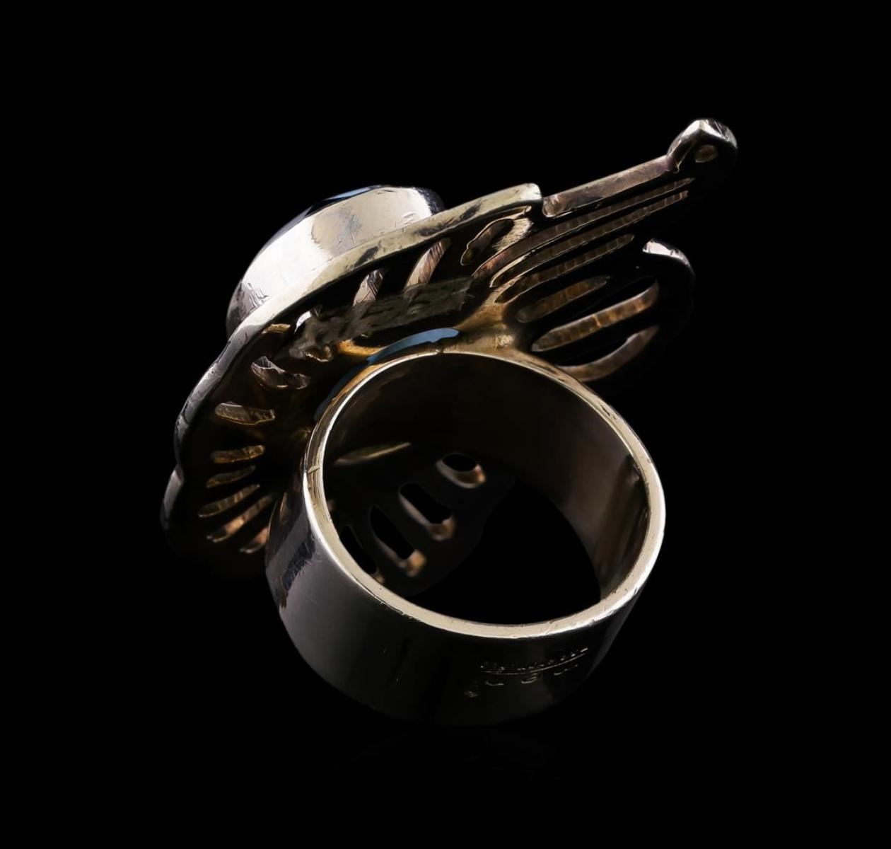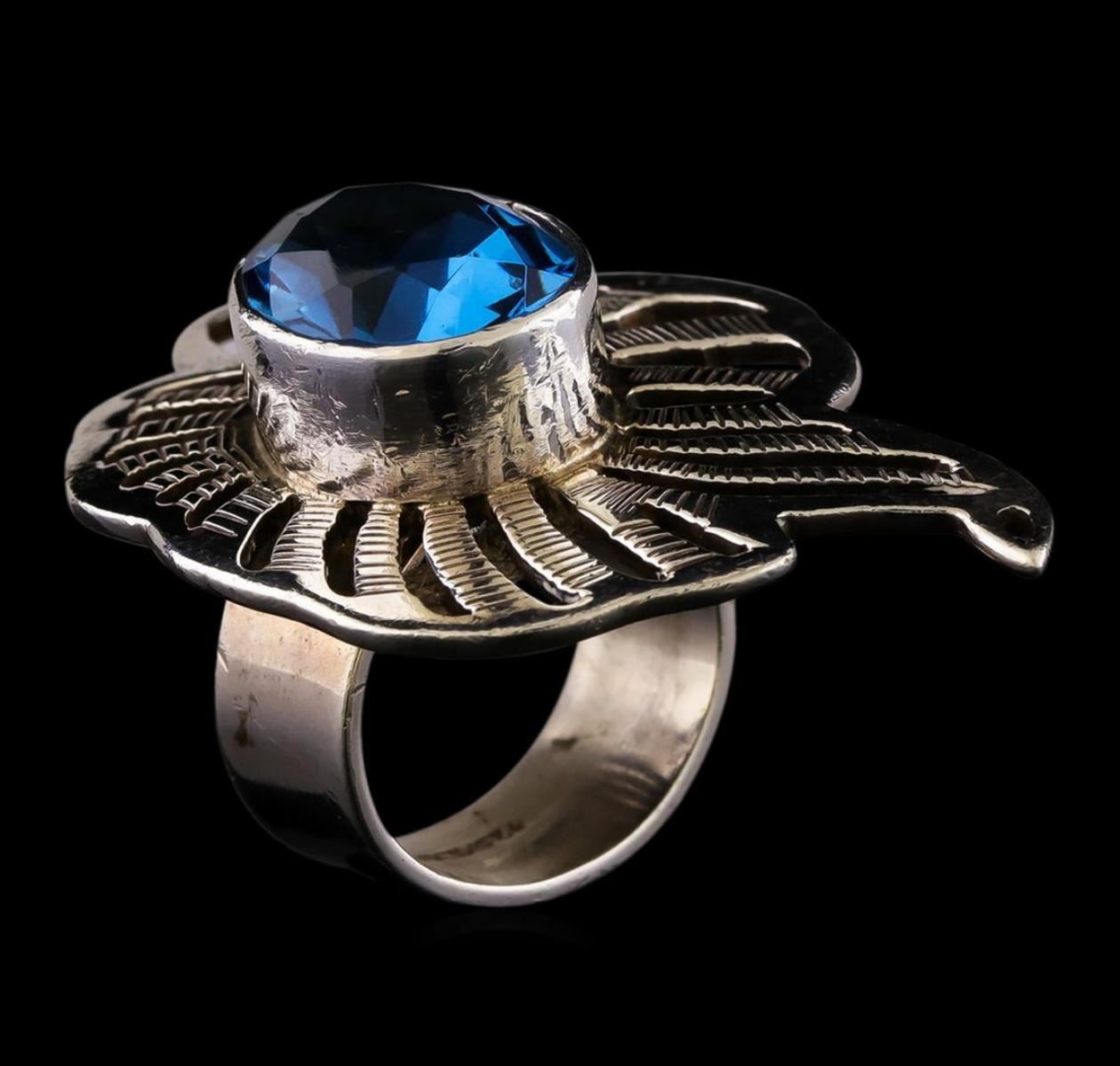 One of a kind high fashion sterling silver Ring weighing 20.8 grams. Containing: Blue Crystal. This sterling silver promises a lasting shine.