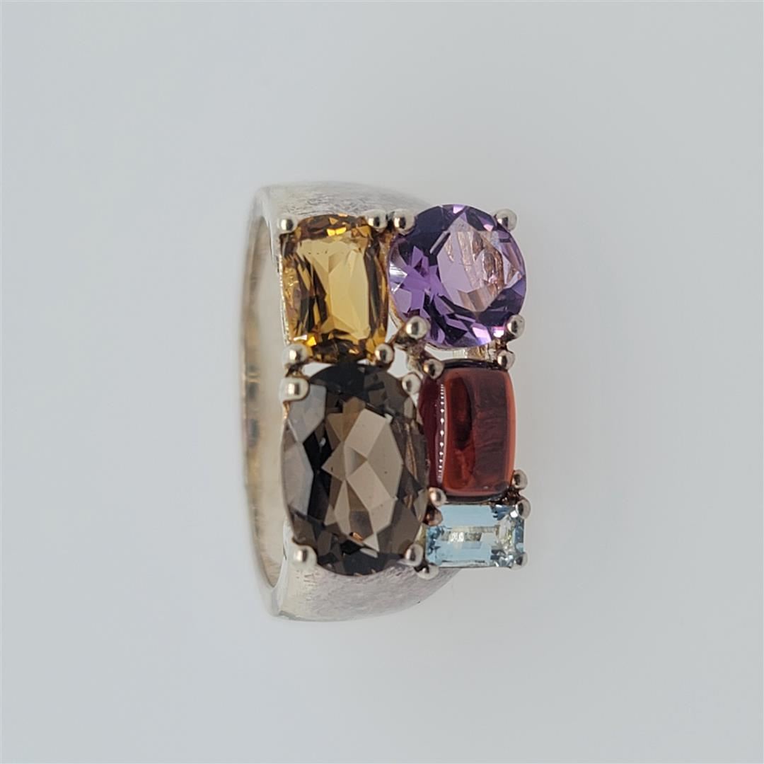 One Sterling Silver Ring. The ring size is 9.5. Contains semiprecious stones.