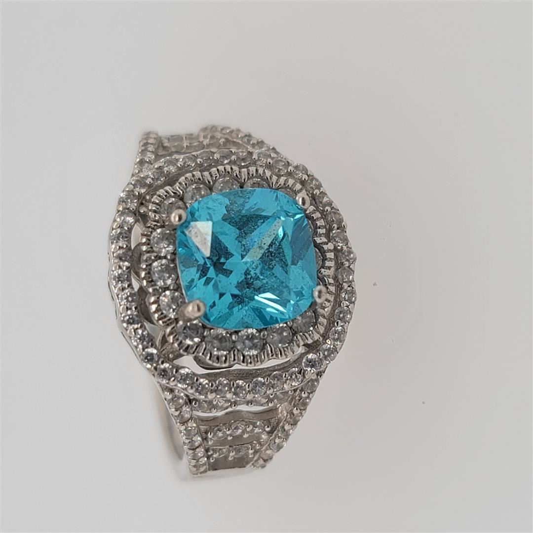 One Sterling Silver Ring. The ring size is 9.75. Contains semiprecious stones.