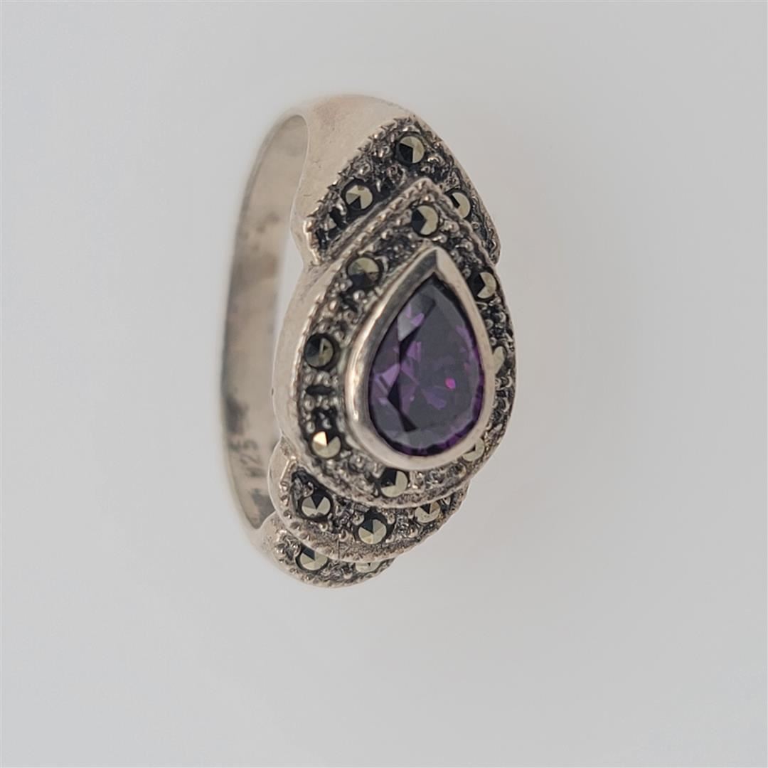 One Sterling Silver Ring. The ring size is 7.75. Contains semiprecious stones.