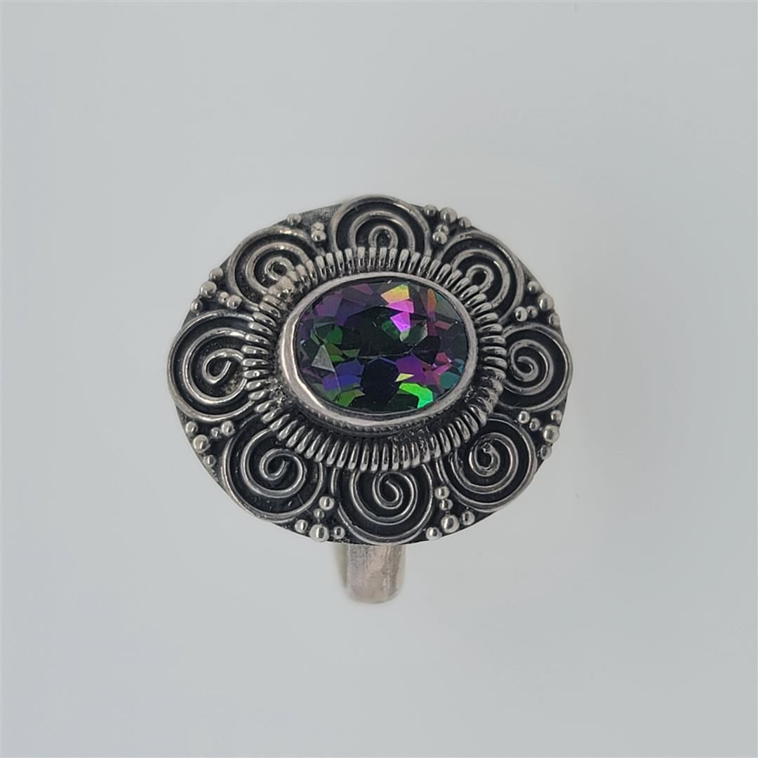 One Sterling Silver Ring. The ring size is 10.5. Contains semiprecious stones.