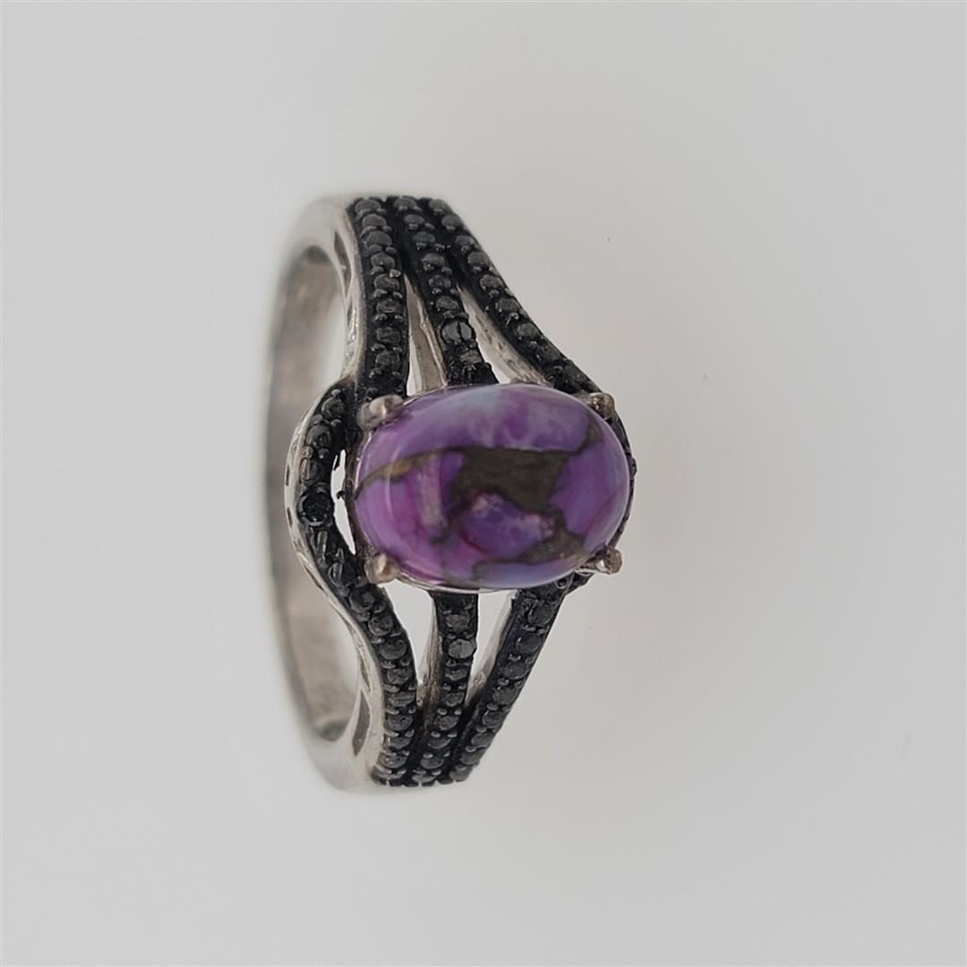 One Sterling Silver Ring. The ring size is 9. Contains semiprecious stones.