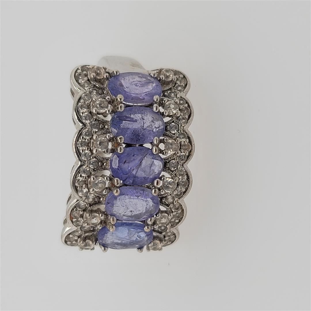 One Sterling Silver Ring. The ring size is 9. Contains semiprecious stones.