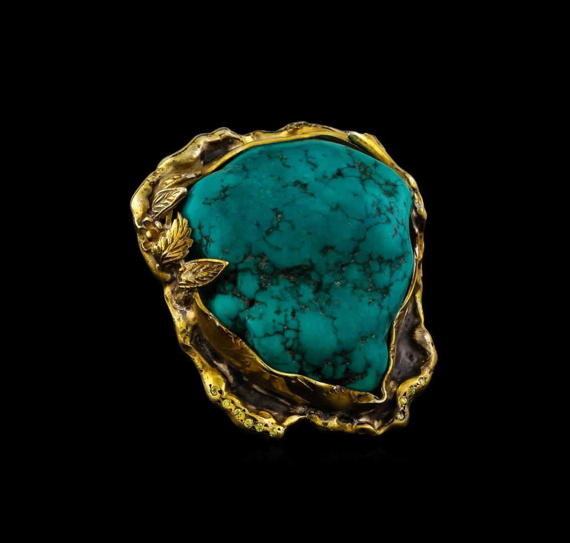 One of a kind high fashion sterling silver Ring weighing 36.1 grams. Containing: Turquoise, Yellow Crystal. This sterling silver promises a lasting shine.
