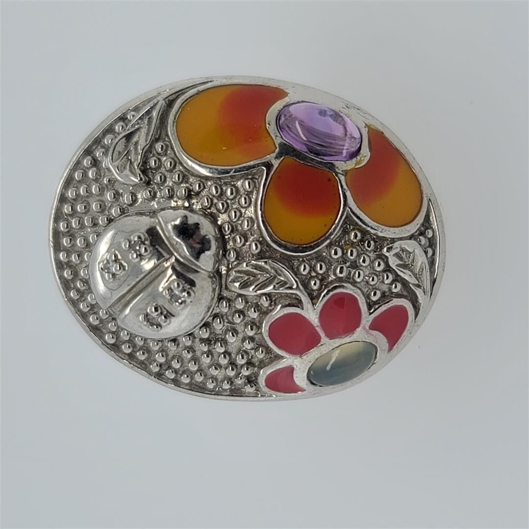 One Sterling Silver Ring. The ring size is 7.25. Contains semiprecious stones.