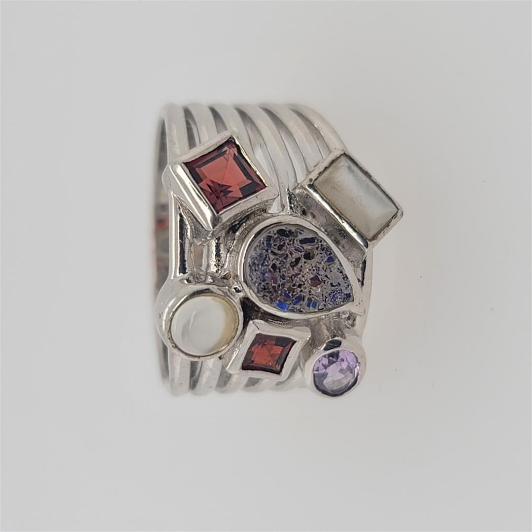 One Sterling Silver Ring. The ring size is 6.75. Contains semiprecious stones.