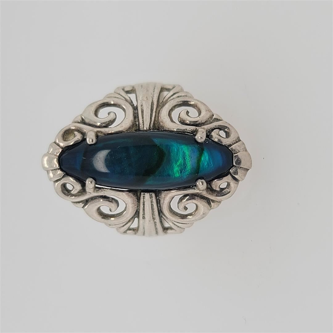 One Sterling Silver Ring. The ring size is 7. Contains semiprecious stones.