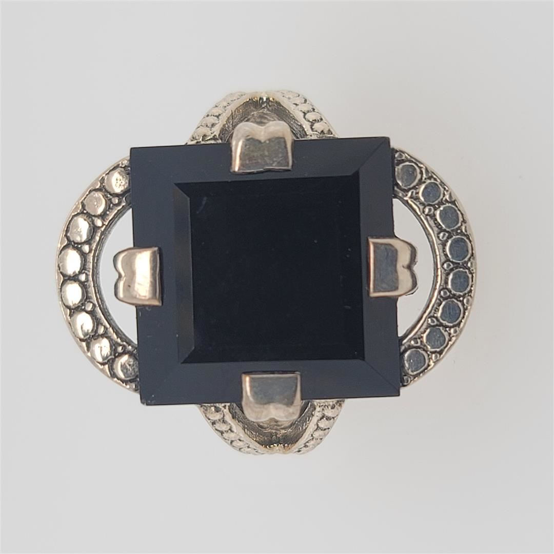 One Sterling Silver Ring. The ring size is 7. Contains semiprecious stones.