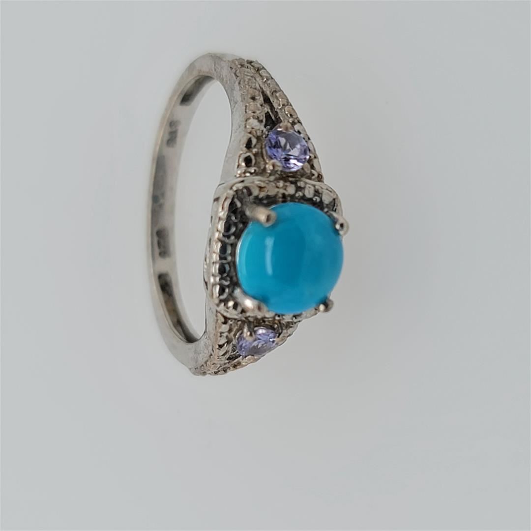 One Sterling Silver Ring. The ring size is 6. Contains semiprecious stones.