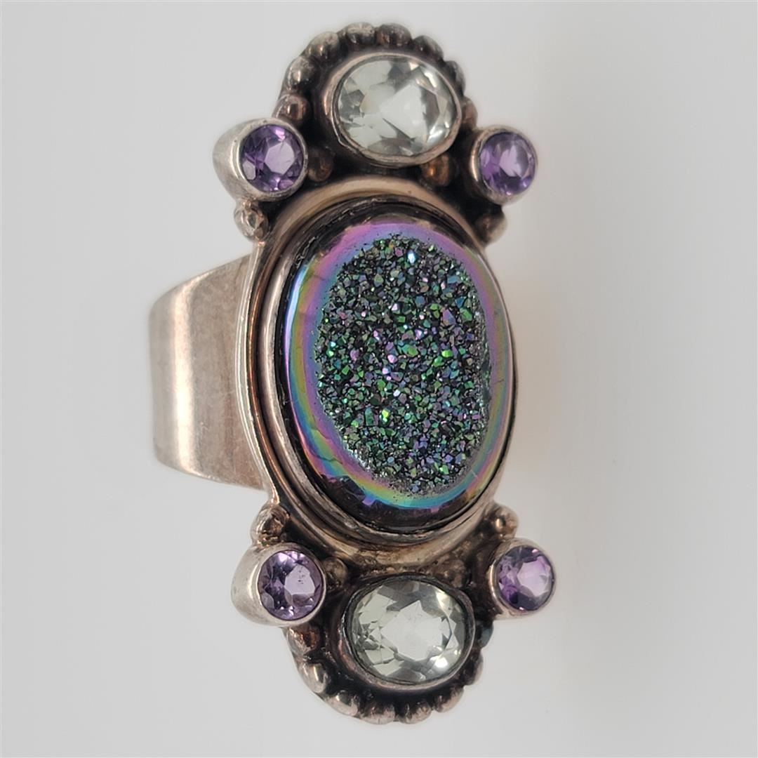 One Sterling Silver Ring. The ring size is 8. Contains semiprecious stones.