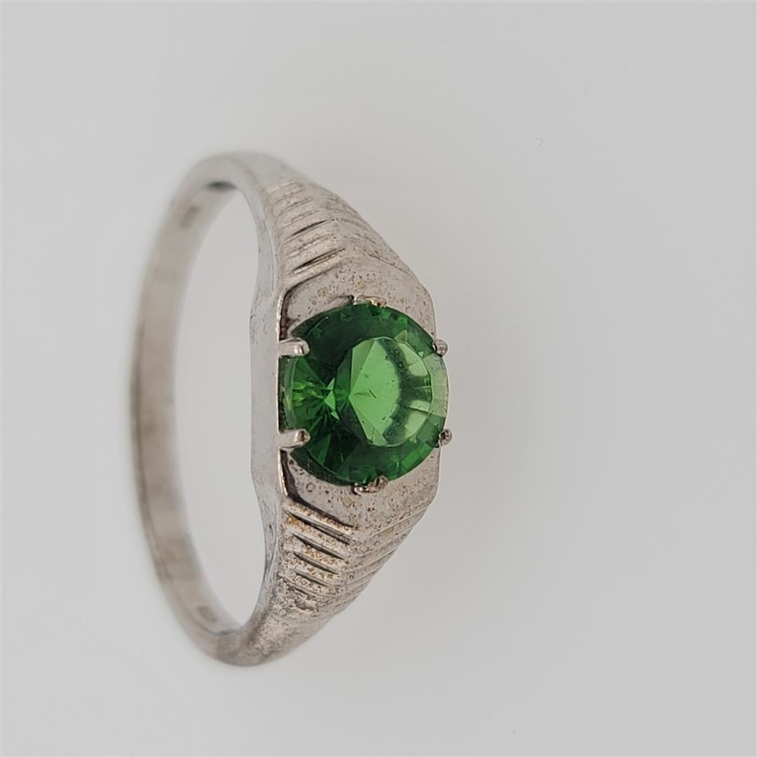 One Sterling Silver Ring. The ring size is 14.25. Contains semiprecious stones.
