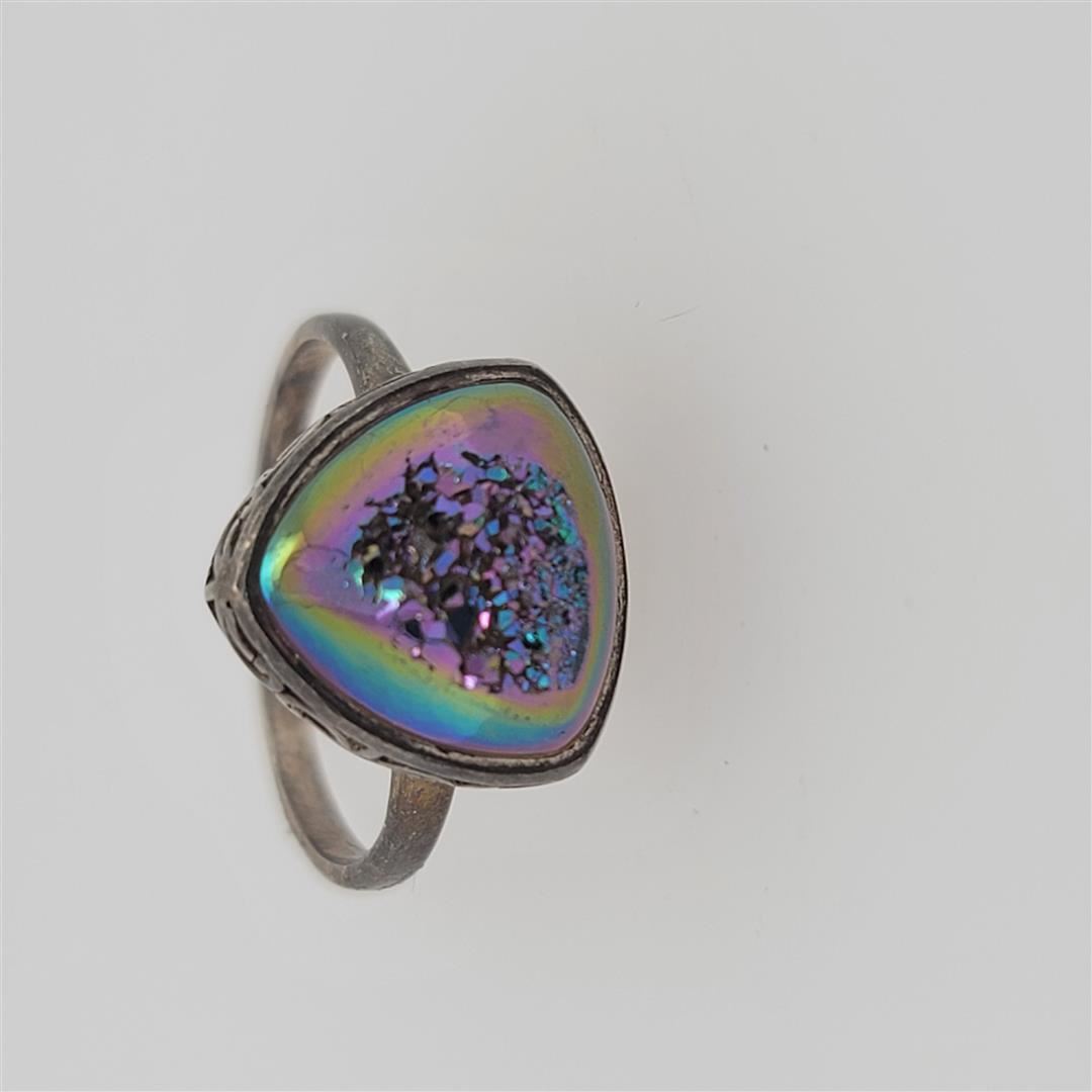 One Sterling Silver Ring. The ring size is 8. Contains semiprecious stones.