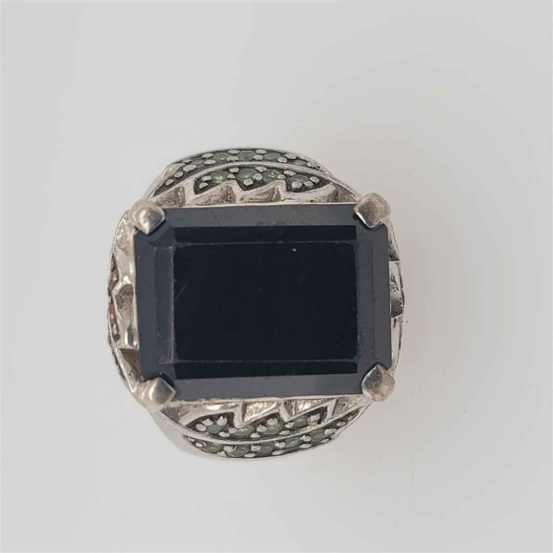 One Sterling Silver Ring. The ring size is 5.75. Contains semiprecious stones.