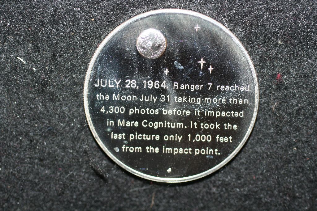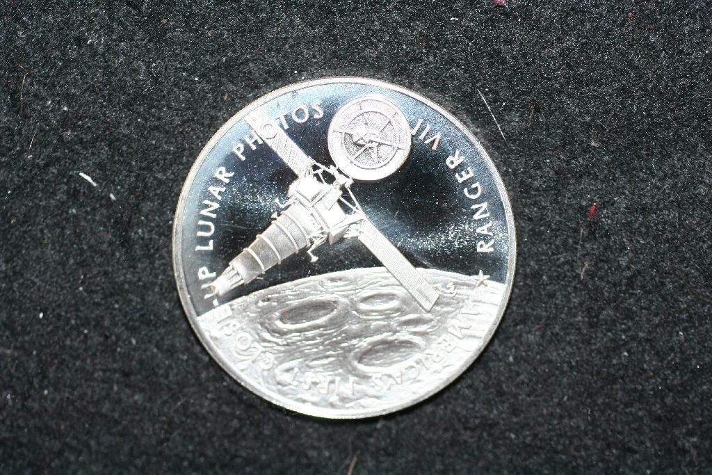 Sterling Silver Round; America's First Close-Up Lunar Photos-Ranger VII; Ranger 7 reached the moon taking more tan 4,300 photos before it impacted. Took last photo 1,000 feet from the impact point; .75+ Oz.