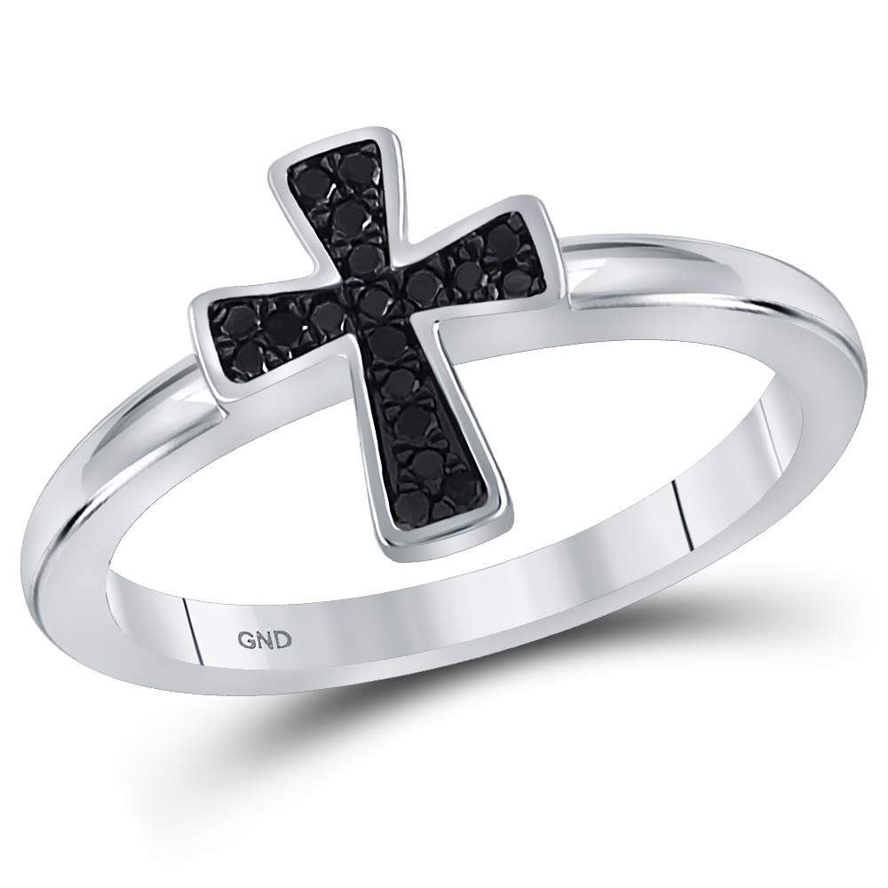 Sterling Silver Womens Round Black Color Enhanced Diamond Flared Cross Ring 1/10 Cttw