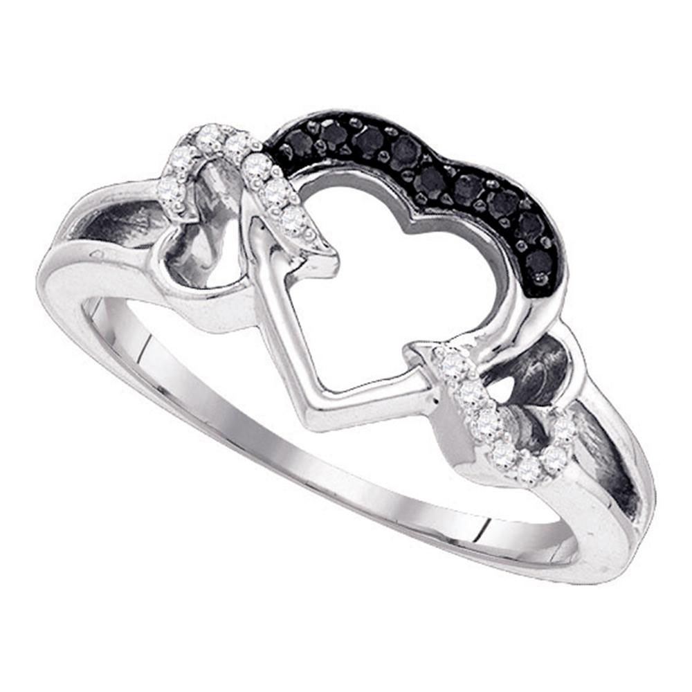 Sterling Silver Womens Round Black Color Enhanced Diamond Heart Ring 1/8 Cttw