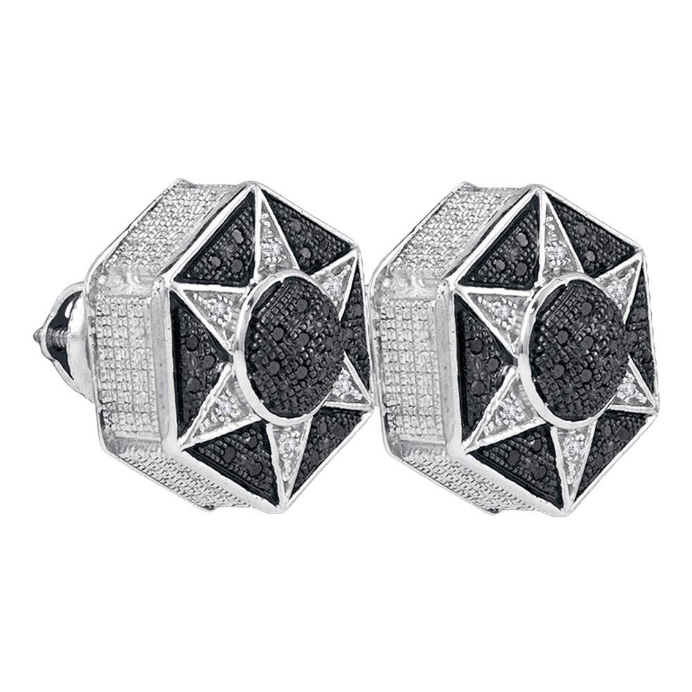 SKU: RB83254 ---- Sterling Silver Round Black Color Enhanced Diamond Hexagon Star Cluster Earrings 1/5 Cttw