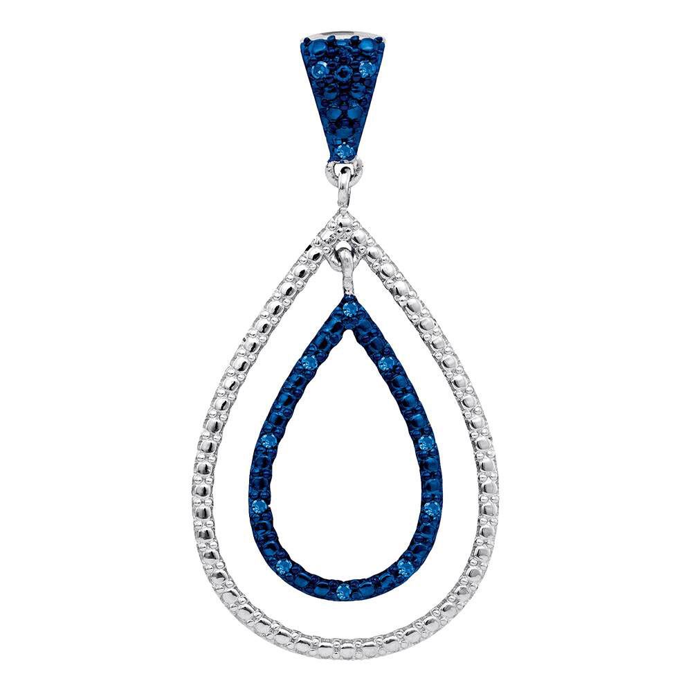 SKU: RB88598 ---- Sterling Silver Round Blue Color Enhanced Diamond Teardrop Pendant 1/10 Cttw