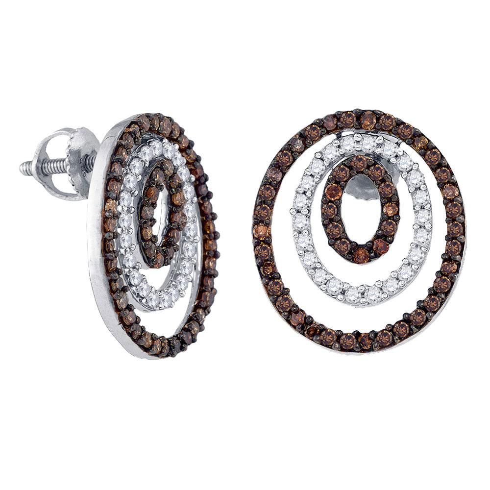 Sterling Silver Womens Round Brown Diamond Circle Stud Earrings 1.00 Cttw