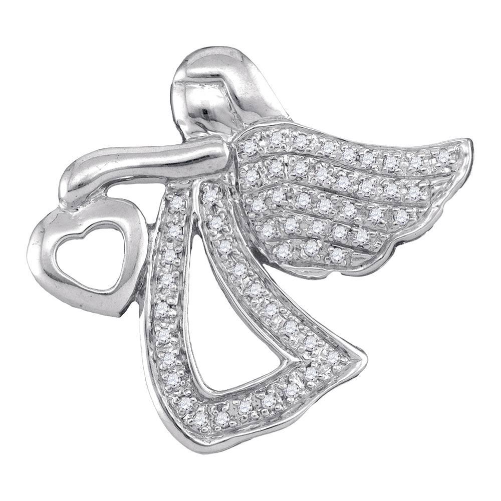 SKU: RB75156 ---- Sterling Silver Round Diamond Angel Heart Religious Pendant 1/8 Cttw