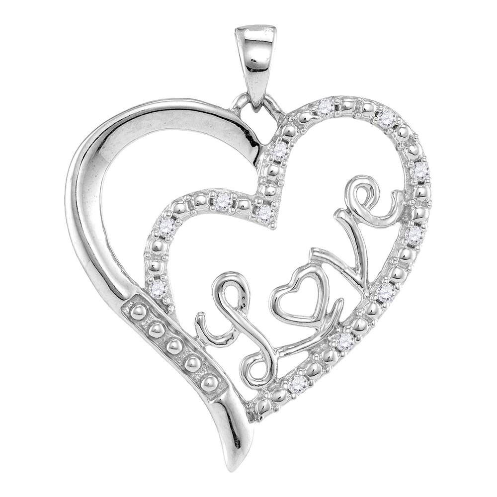 Sterling Silver Womens Round Diamond Double Heart Pendant 1/10 Cttw