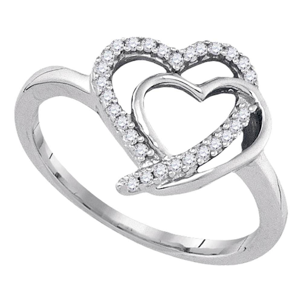 Sterling Silver Womens Round Diamond Double Joined Heartss Love Ring 1/6 Cttw