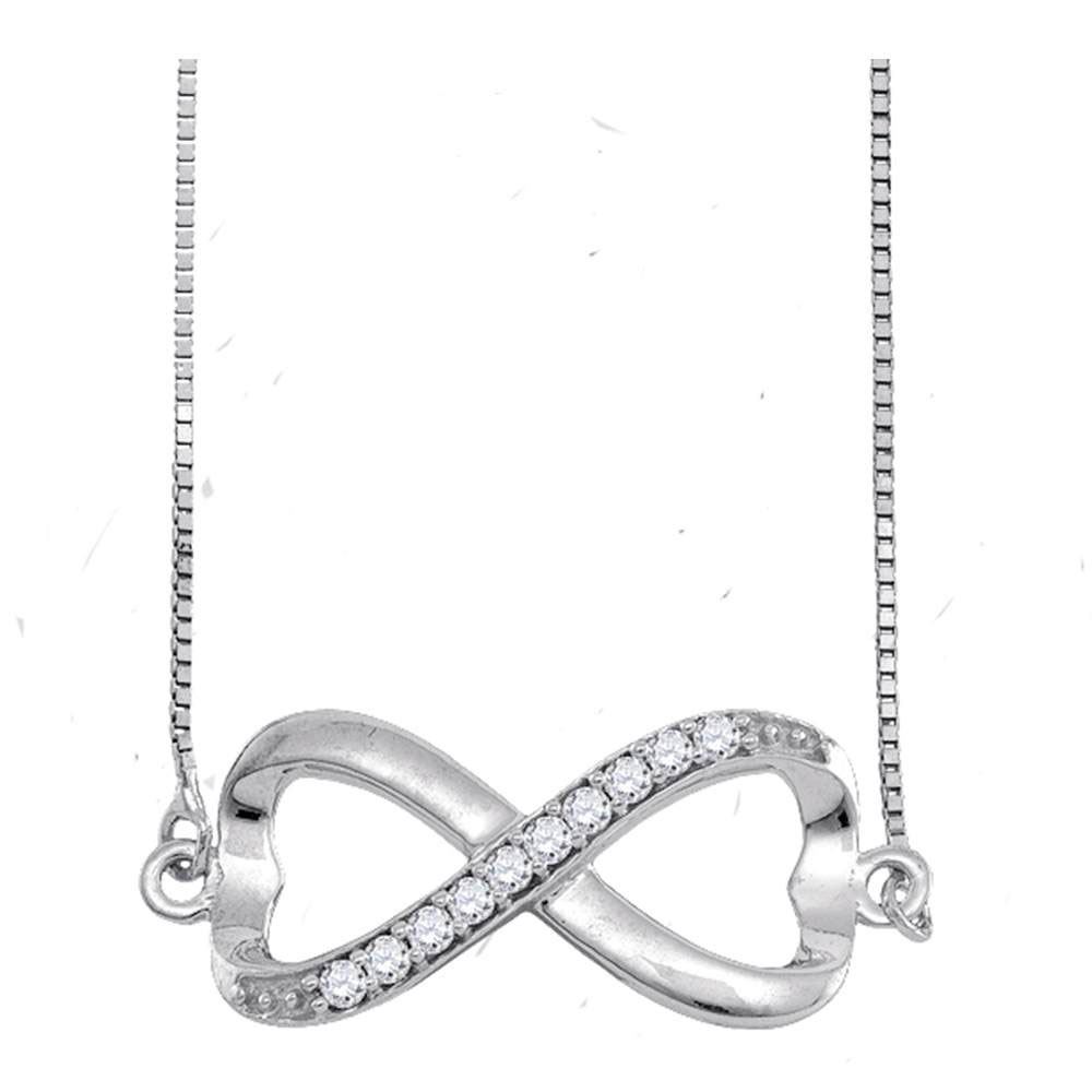 Sterling Silver Womens Round Diamond Infinity Pendant Necklace 1/10 Cttw