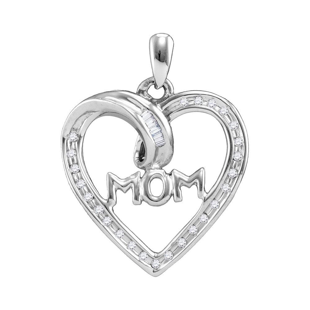 Sterling Silver Womens Round Diamond Mom Mother Heart Pendant 1/10 Cttw