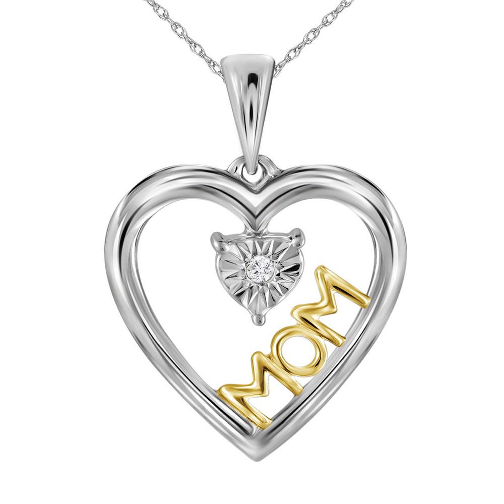SKU: RB113188 ---- Sterling Silver Round Diamond Moving Twinkle Solitaire Two-tone Mom Heart Pendant .02 Cttw