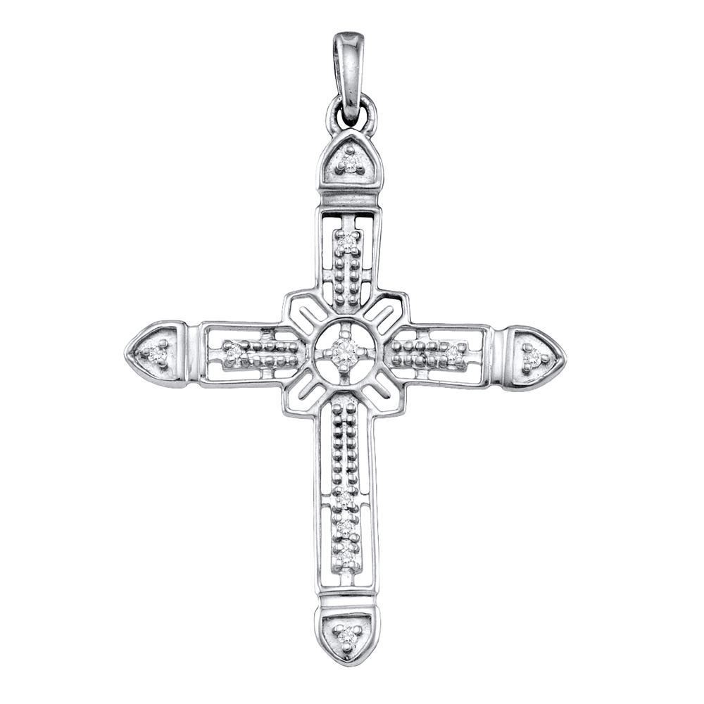 Sterling Silver Womens Round Diamond Roman Cross Religious Pendant 1/12 Cttw