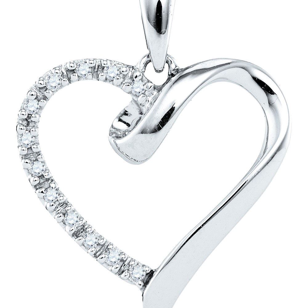 Sterling Silver Womens Round Diamond Simple Heart Outline Pendant 1/20 Cttw