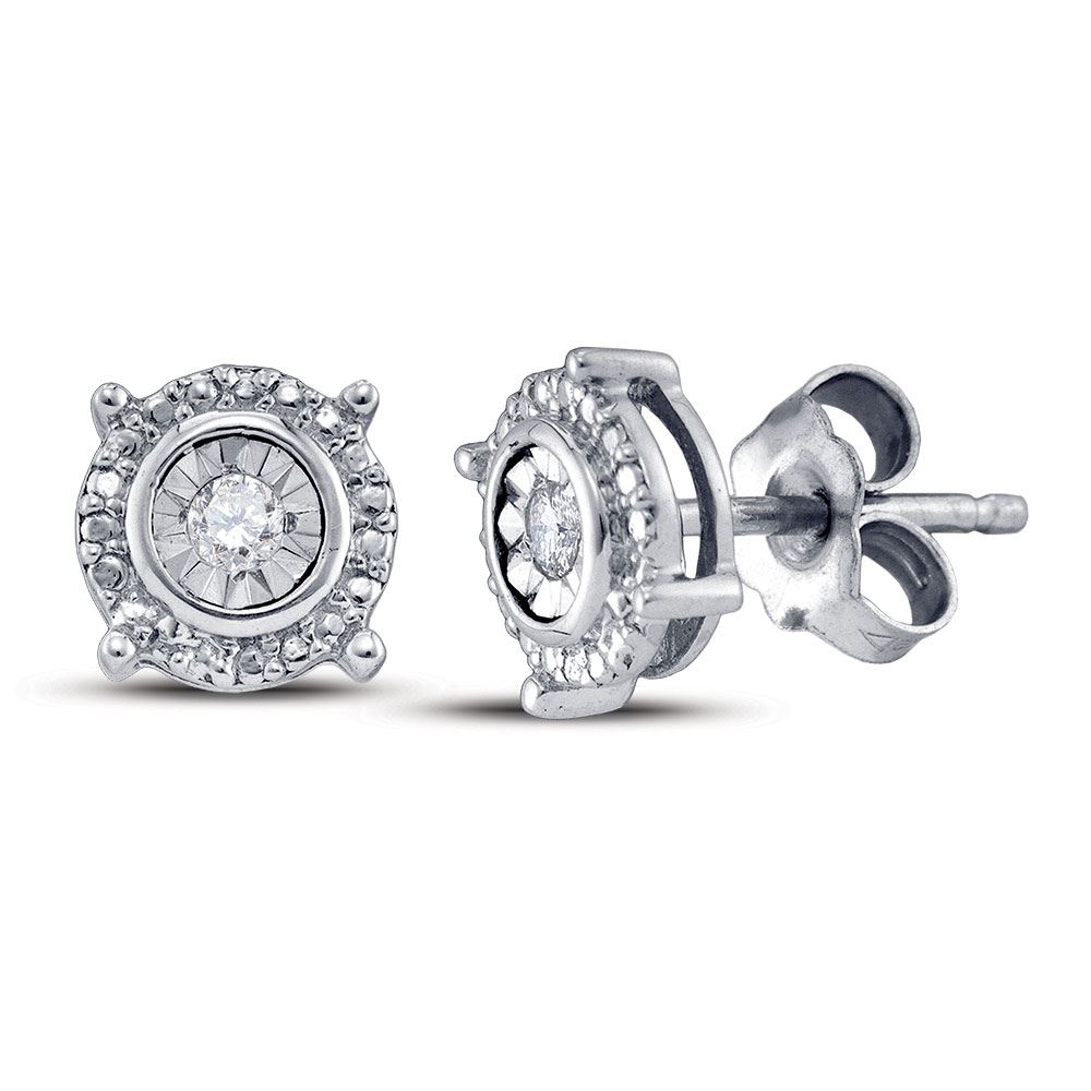 SKU: RB75129 ---- Sterling Silver Round Diamond Solitaire Screwback Stud Earrings 1/20 Cttw