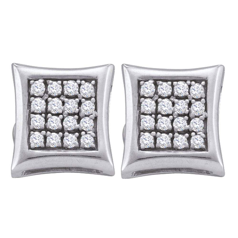 Sterling Silver Womens Round Diamond Square Kite Cluster Screwback Earrings 1/6 Cttw